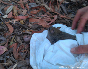 Green Tape Solutions staff are experienced in the identification, capture and relocation of wildlife. We are trained in handling difficult and dangerous animals (venomous snakes) and as wildlife rescuers and carers, we have appropriate qualification to treat injured wildlife.